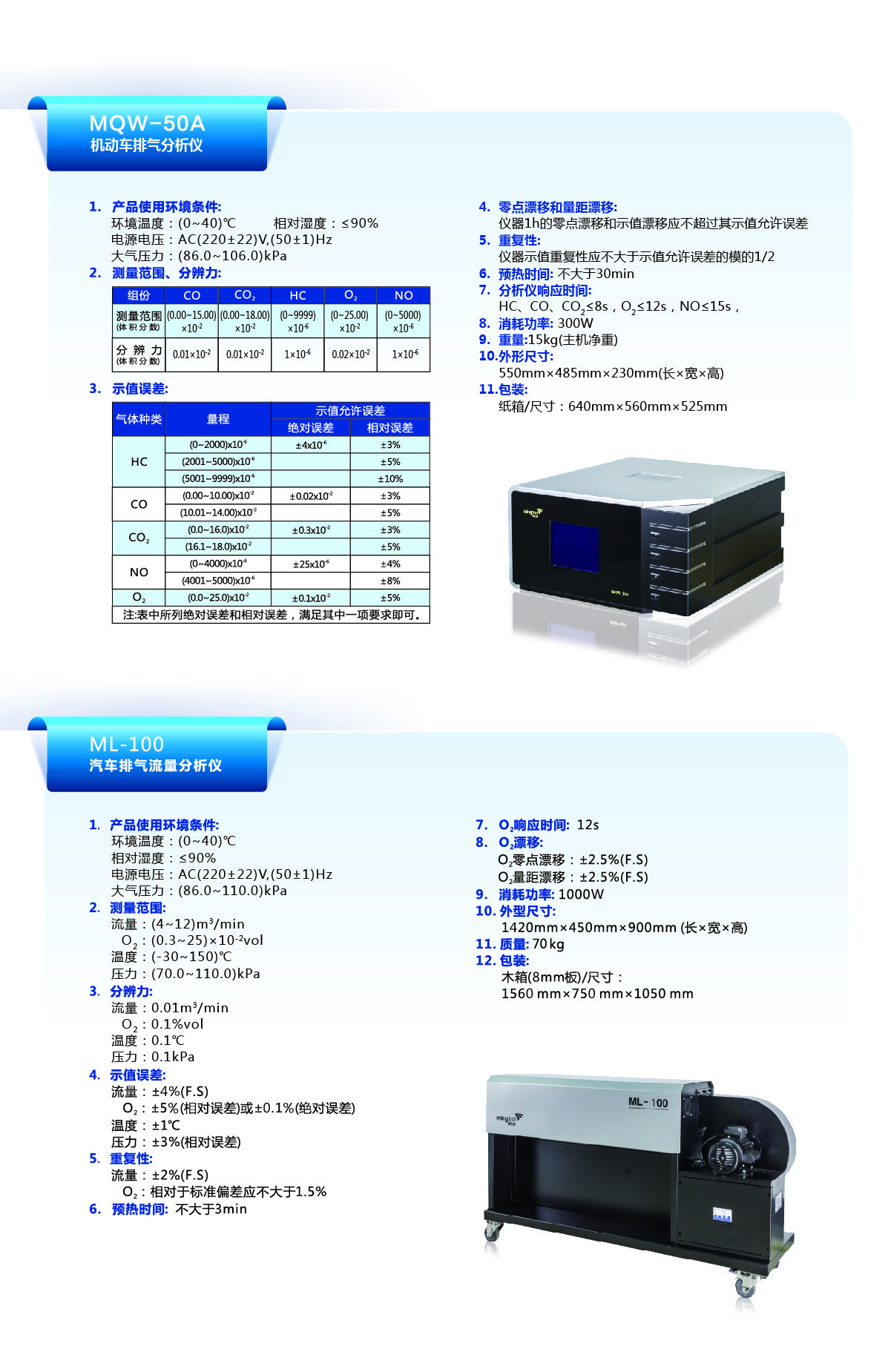 CO2:±0.5 ×10-2 (%)(絕對誤差)或±5%(相對誤差)