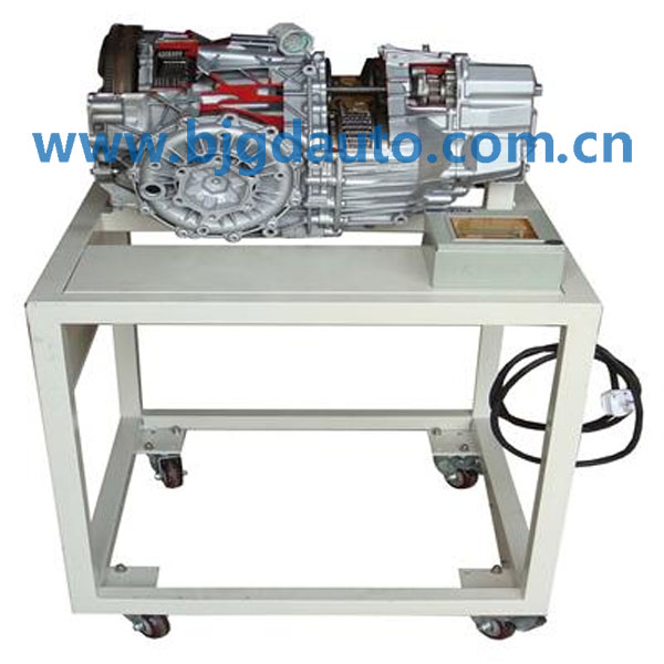 設(shè)備采用自動變速箱總成實物制作,變速箱的關(guān)鍵部位加以開放式解剖,解剖剖面進行精細分色。配置射燈使液力變矩器、輸入輸出軸、太陽輪、行星齒輪、電磁閥等內(nèi)部結(jié)構(gòu)清晰可見。利用本實驗臺可以使學(xué)員輕松、真實地了解變速箱機械系統(tǒng)的組成、各部件的外形、各機構(gòu)彼此之間的連接關(guān)系,加深學(xué)生對變速箱機械系統(tǒng)組成和工作原理的理解,幫助學(xué)生理解抽象的控制理論。