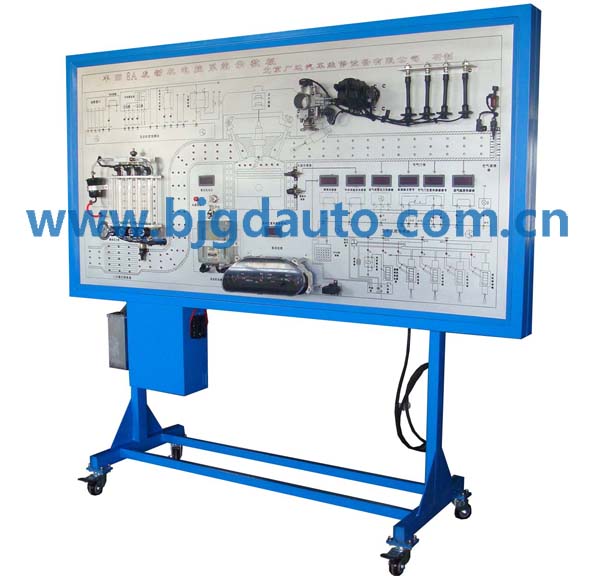 設(shè)備采用原車汽油發(fā)動機電控系統(tǒng)器件組成,包括:電控單元(ECU)、組合儀表、點火開關(guān)、發(fā)動機防盜系統(tǒng),以及發(fā)動機所有傳感器與執(zhí)行器等發(fā)動機電控系統(tǒng)器件;臺架采用以單片機為核心的輔助裝置,可以真實模擬原車運行環(huán)境,彩色LED燈梯次閃爍,形象演示發(fā)動機進氣、燃燒和排氣工作過程。本臺架可以完整展示發(fā)動機電控系統(tǒng)的結(jié)構(gòu)和工作原理,幫助學(xué)生理解抽象的控制理論;可以進行電控系統(tǒng)常見故障的模擬、診斷和檢測,訓(xùn)練學(xué)生分析和解決實際問題的能力,形象的表達了發(fā)動機電控系統(tǒng)的結(jié)構(gòu)組成與工作原理;適合中高等汽車院校與培訓(xùn)機構(gòu)對學(xué)員進行發(fā)動機電控系統(tǒng)的教學(xué)需要。