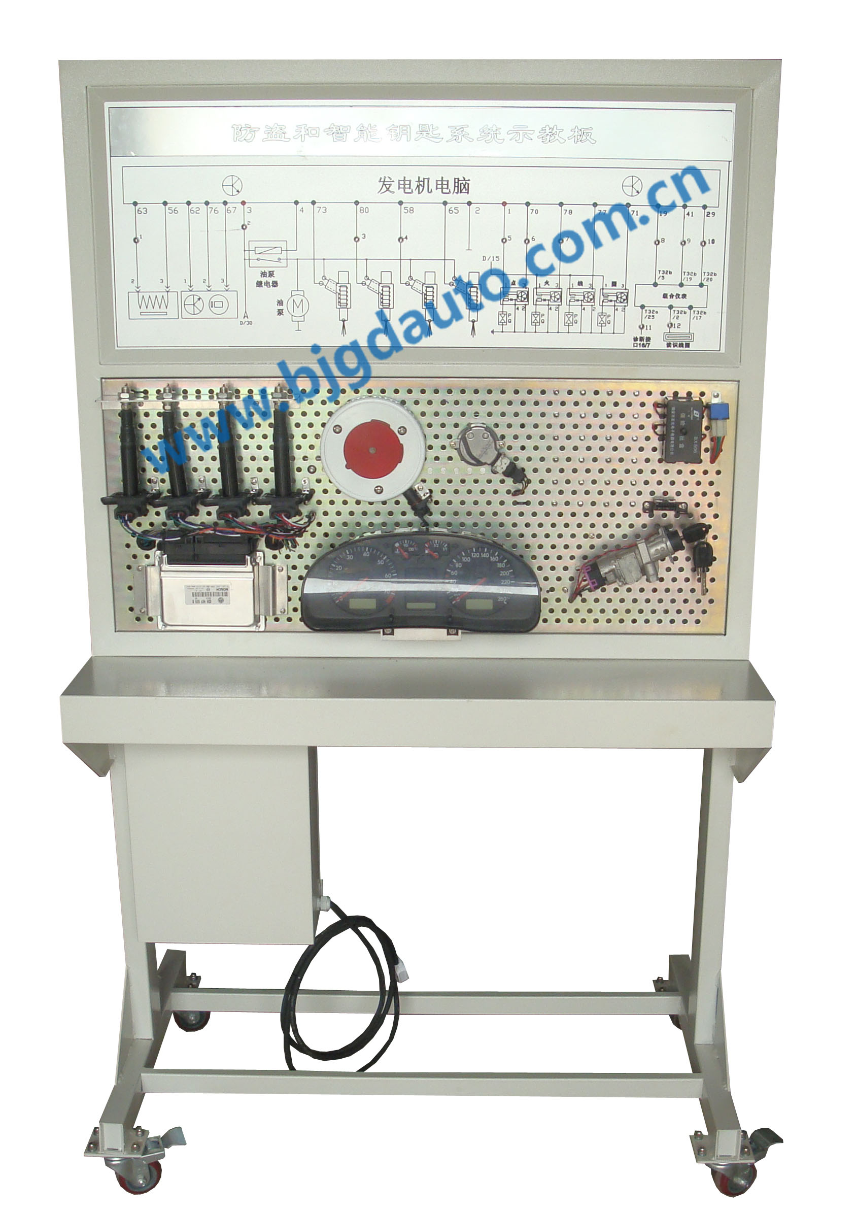 設(shè)備采用原車汽油發(fā)動機(jī)防盜系統(tǒng)器件組成,包括:發(fā)動機(jī)電腦、防盜模塊、讀識線圈、點火開關(guān)、診斷接口、組合儀表、曲軸位置傳感器、凸輪軸位置傳感器、點火線圈、火花塞等。外加系統(tǒng)主要包括: 故障設(shè)置系統(tǒng)、故障顯示裝置、檢測端子以及安全防護(hù)裝置等。本臺架可以完整展示防盜系統(tǒng)的組成、結(jié)構(gòu)和工作原理,可以進(jìn)行系統(tǒng)常見故障的模擬、診斷和檢測實操訓(xùn)練,提高學(xué)生分析和解決實際問題的能力,適合中高等汽車院校與培訓(xùn)機(jī)構(gòu)對學(xué)員進(jìn)行車身電器系統(tǒng)的教學(xué)需要。
