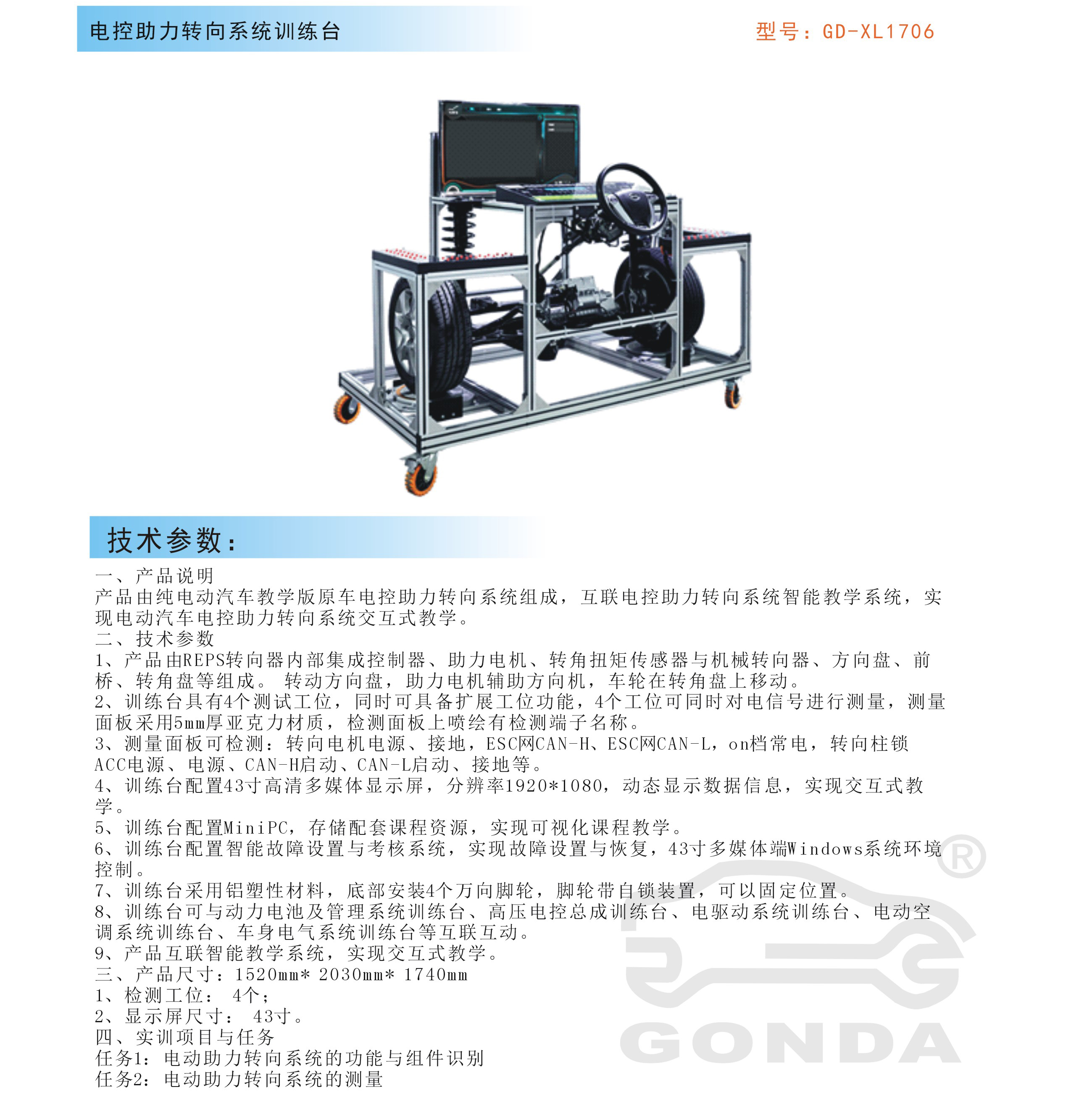 產(chǎn)品名稱:電控助力轉(zhuǎn)向系統(tǒng)實(shí)訓(xùn)臺(tái)