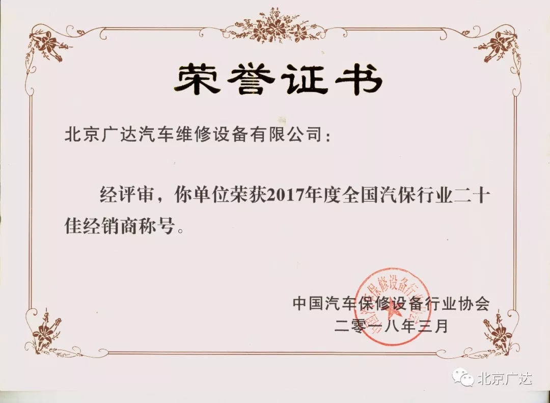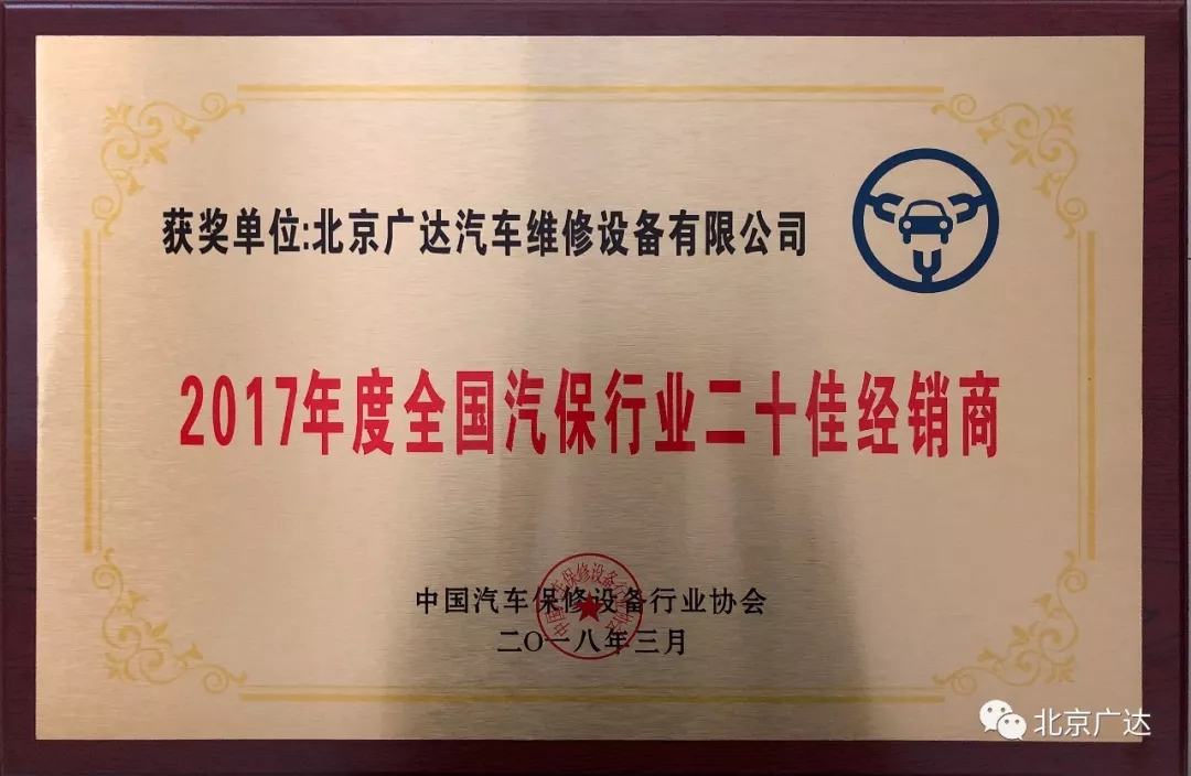 北京廣達(dá)蟬聯(lián)“2017年度全國(guó)汽保行業(yè)二十佳經(jīng)銷